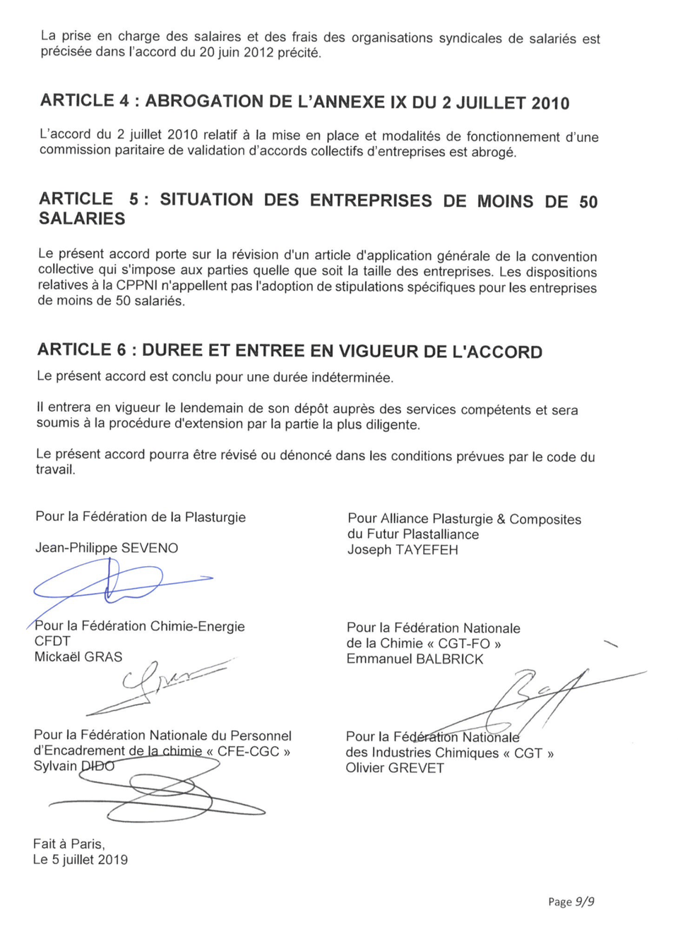 L’accord CPPNI signé par la Fédération de la plasturgie et des composites, la CFDT, la CGT-FO et la CFE-CGC est reproduit plus bas dans notre article.